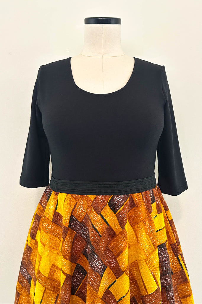 Interwoven threads of amber, chestnut, and light — textured and refined, with a quiet strength that stands out.