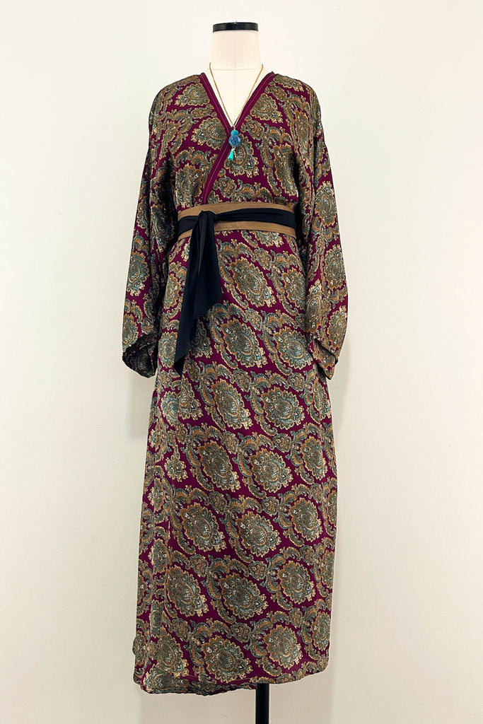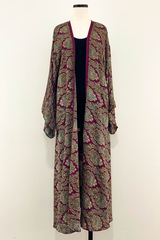 Long Upcycled Kimono Robe ~ Imperial Orchid