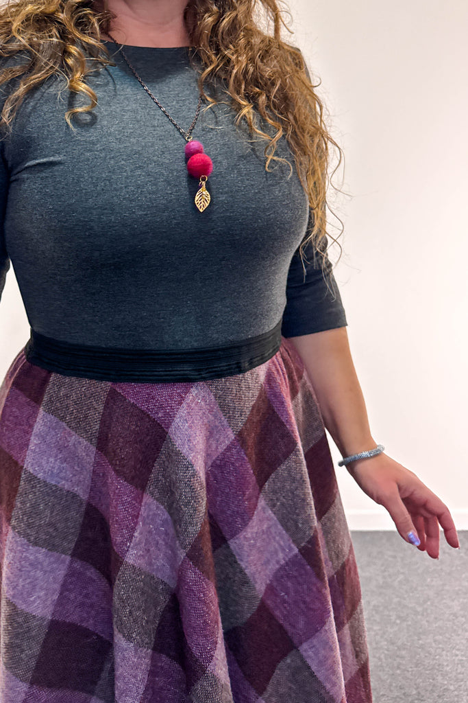 Soft romance in plum and rose — a cozy plaid with timeless charm and a hint of sweetness.