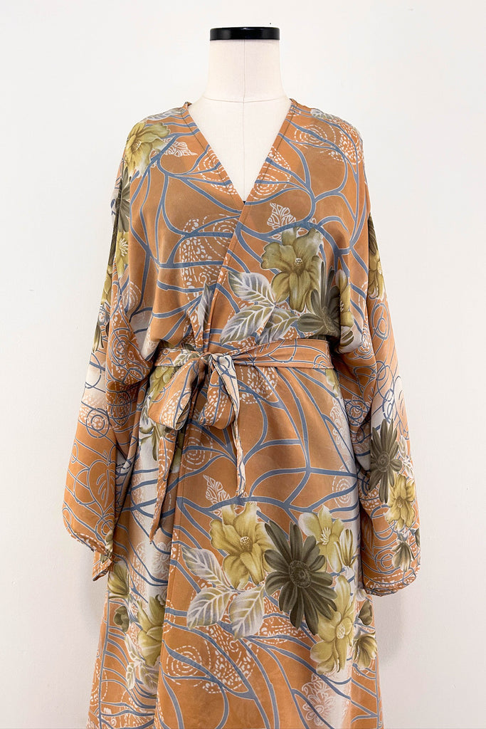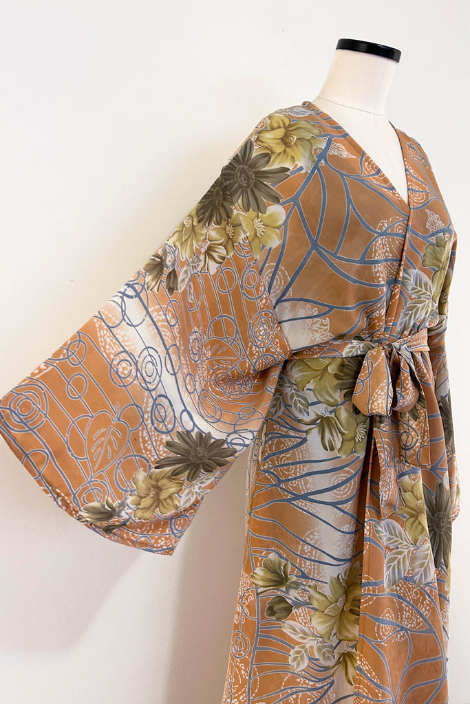 Long Upcycled Kimono Robe ~ Blush Dream