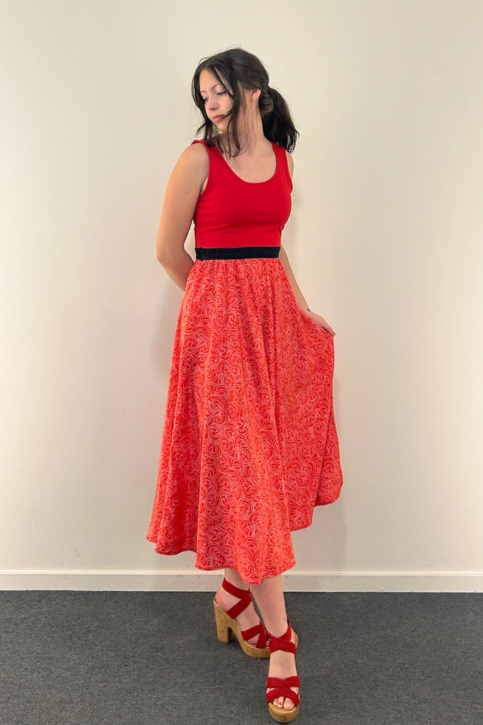 - Tank style bodice in red