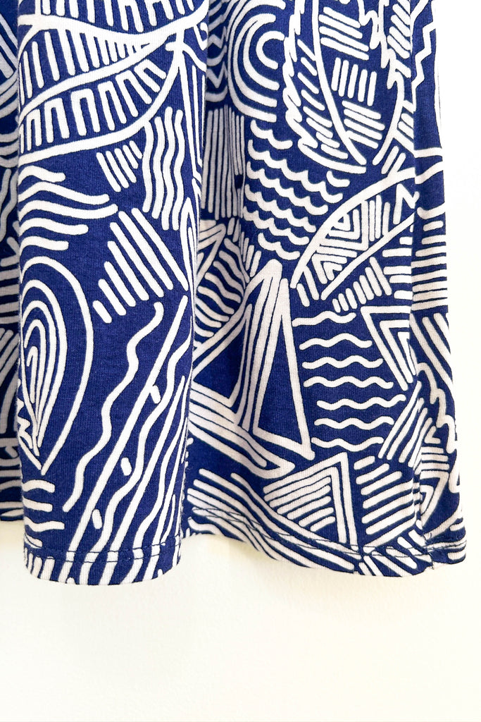 Bold lines and artistic energy — This stretchy frock is lounge ready.